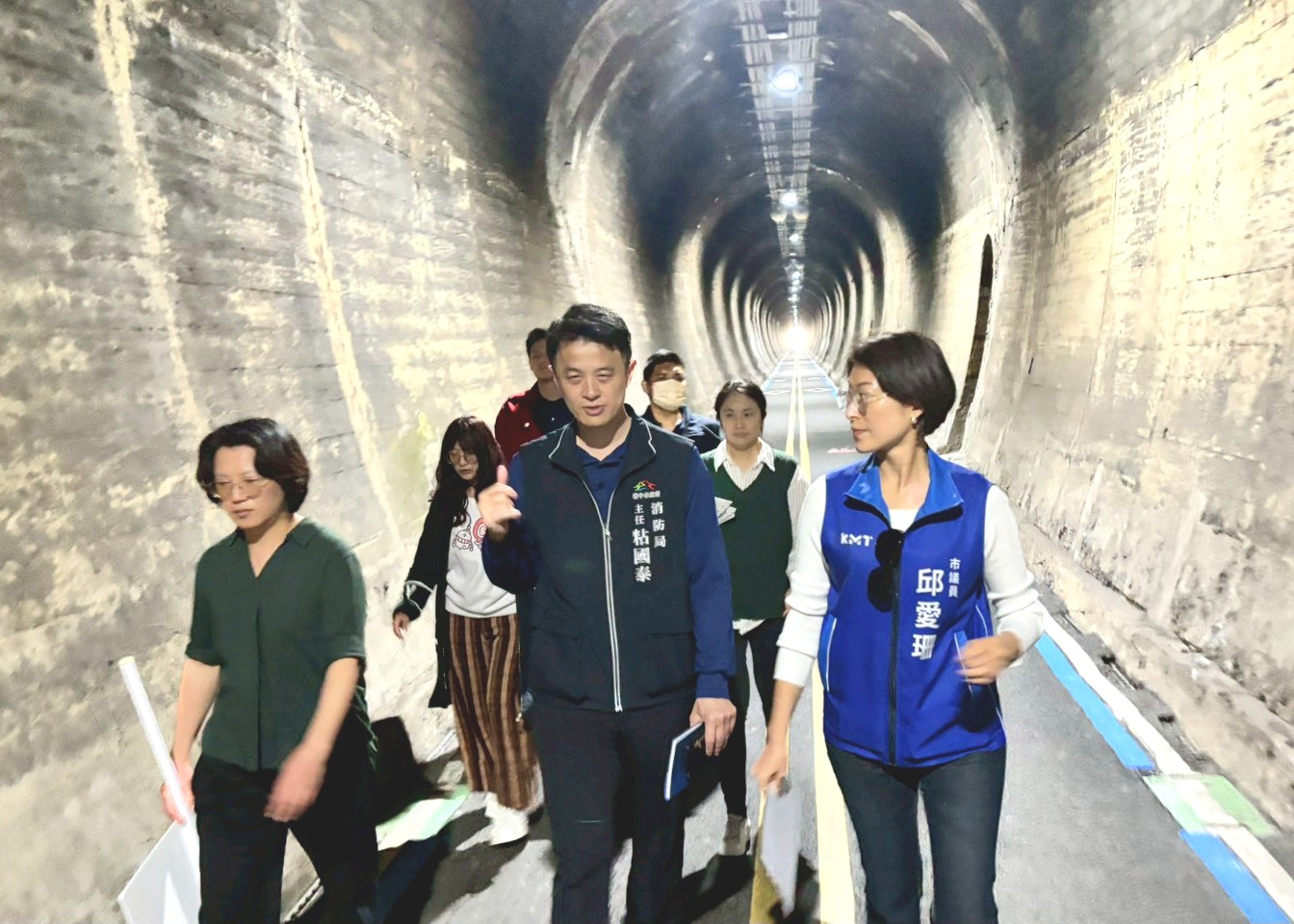 另外,另考量隧道屬文化資產,牆面無法增設過多固定標示,建議觀旅局評估以燈光投影方式於牆面呈現方向指引,以兼顧文化資產保存與導引功能。