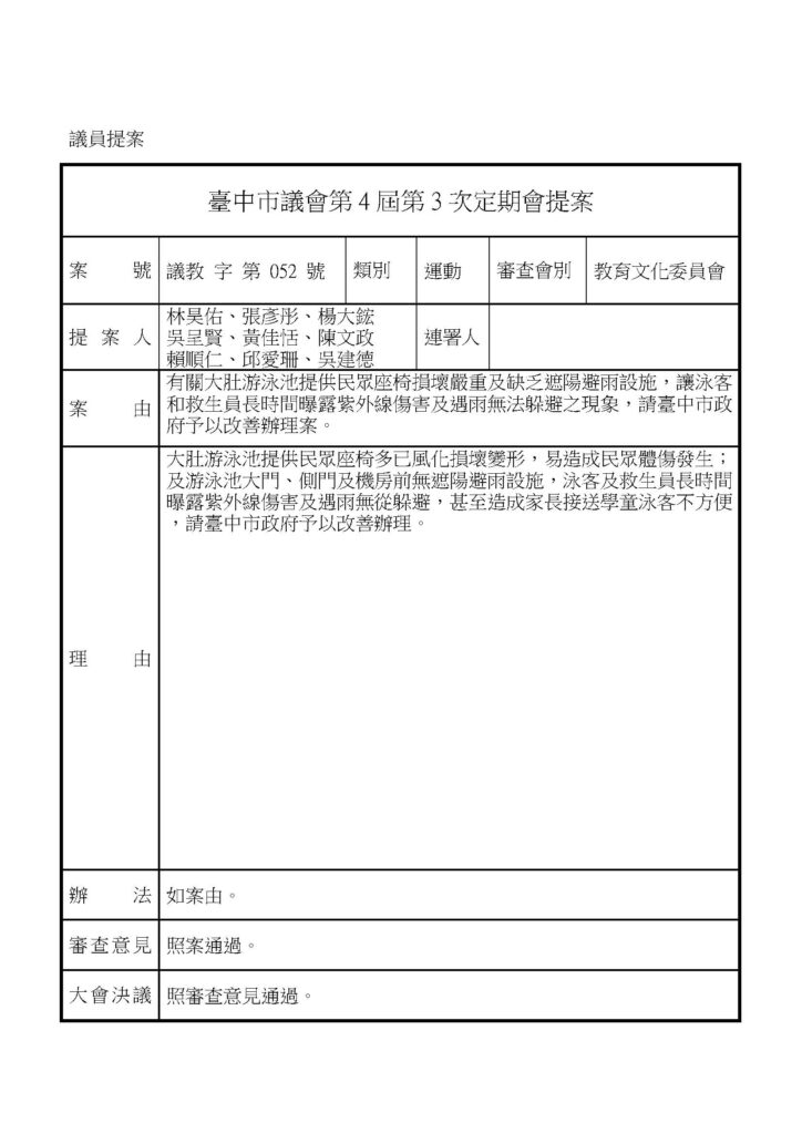 教育文化 - 議會提案 - 議會相關