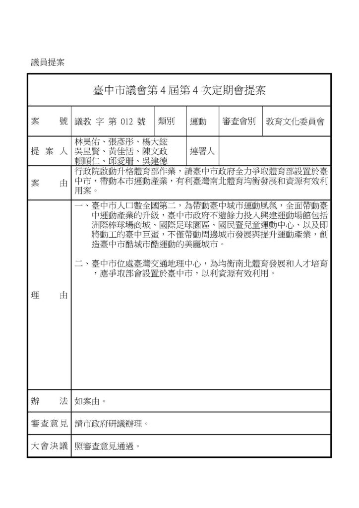 議會提案 - 教育文化 - 議會相關
