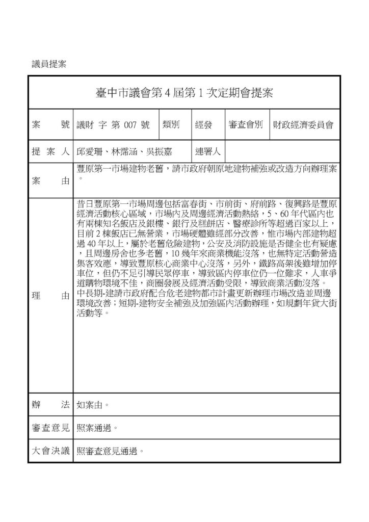 地方相關-豐原 - 議會提案 - 議會相關 - 財政經濟