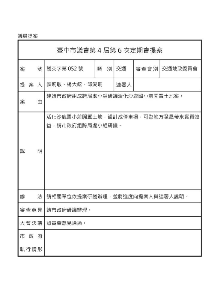議會相關 - 交通地政 - 議會提案