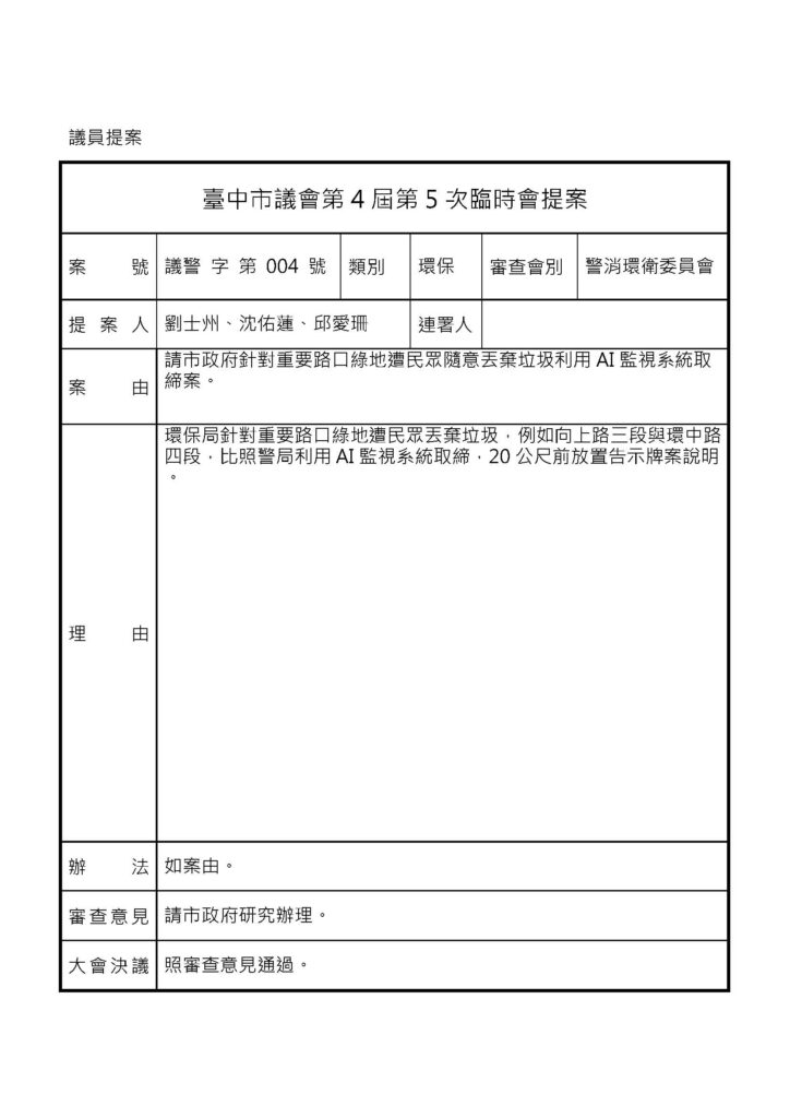 議會提案 - 警消環衛 - 議會相關