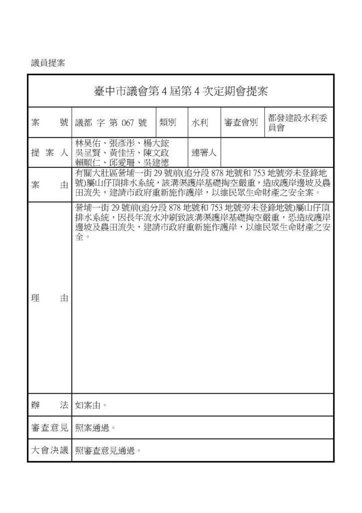 都發建設水利 - 議會提案 - 議會相關
