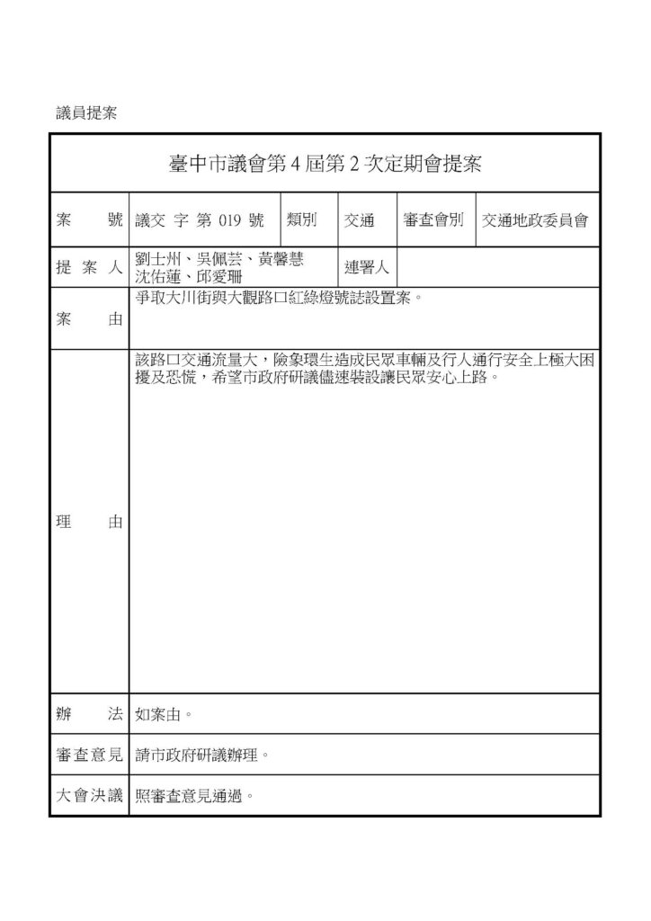 #愛珊在議會-提案📄「爭取大川街與大觀路口紅綠燈號誌設置」