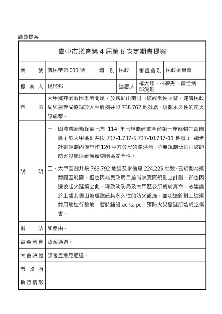議會提案 - 民政 - 議會相關