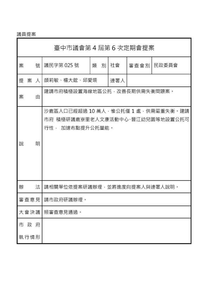 議會提案 - 民政 - 議會相關