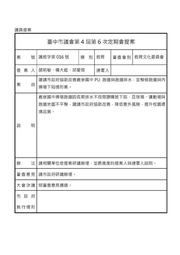 議會提案 - 教育文化 - 議會相關