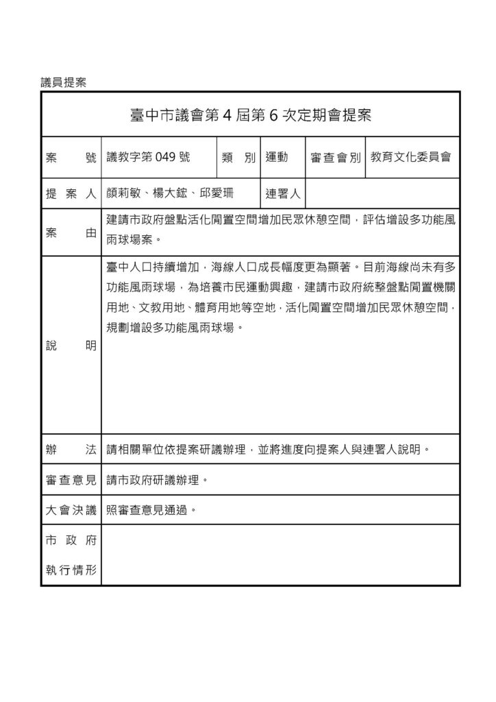 議會相關 - 教育文化 - 議會提案