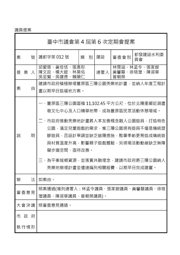 地方相關-豐原 - 議會提案 - 議會相關 - 都發建設水利