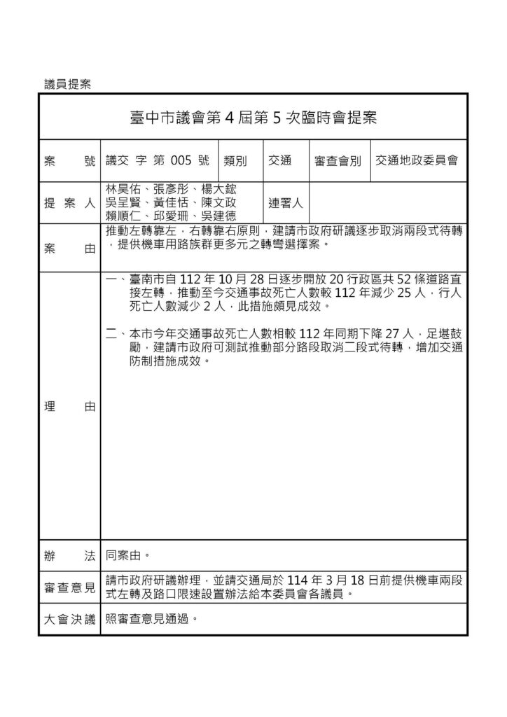 議會相關 - 交通地政 - 議會提案