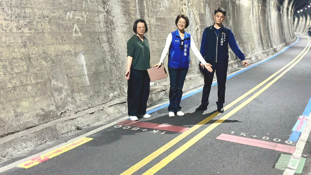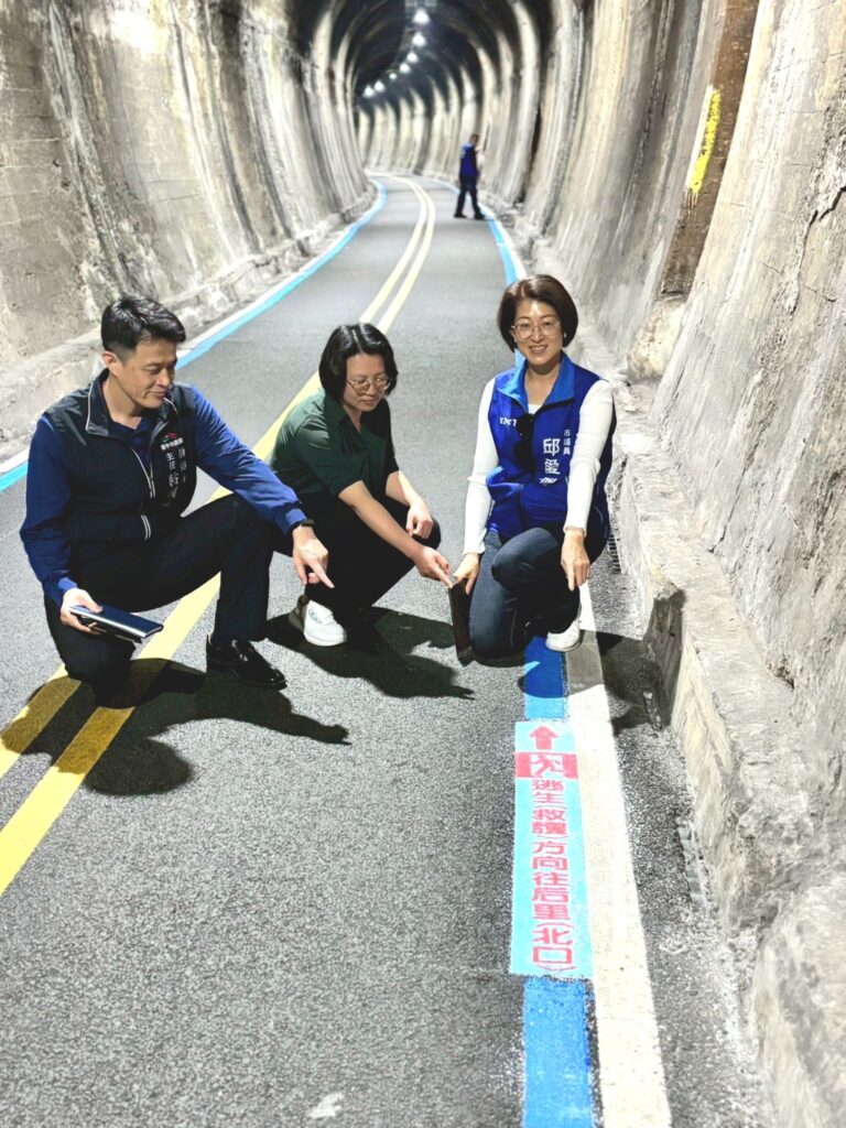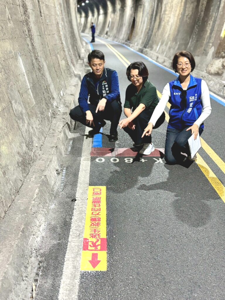 愛珊實地勘查後發現,現有標線辨識度不足,仍有加強空間,建議觀旅局在九號隧道口兩端優化南北向標示,讓遊客更能一目瞭然。